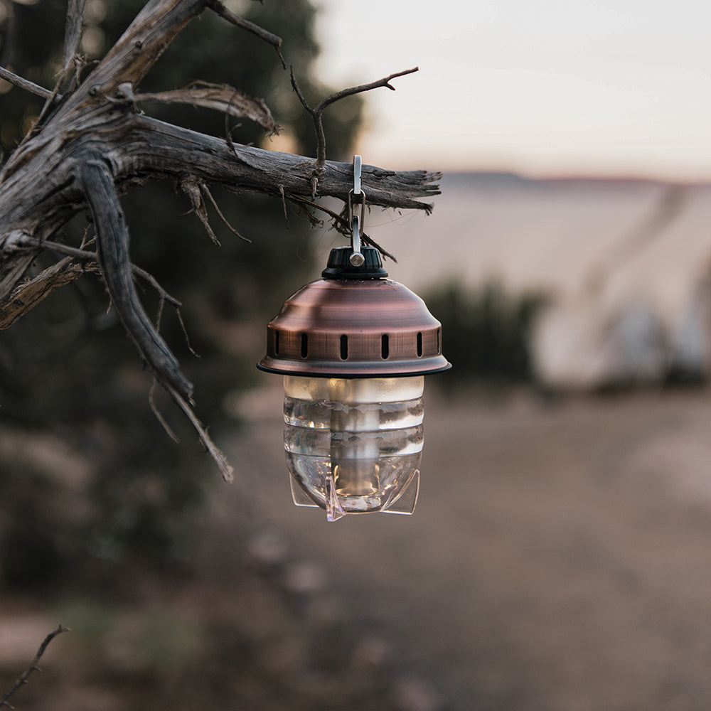 The Beacon Hanging Light is our go-to camp and adventure lantern. This portable light easily hangs with its carabiner top or stands on its sturdy base, and a smooth dimming feature brightens your surroundings & sets the mood. This small lantern comes with an attached 9-inch USB cord and an additional 35-inch cord for its rechargeable battery—which lasts 200+ hours on low or three hours on high. And thanks to a convenient battery life indicator, you'll never be left in the dark.
